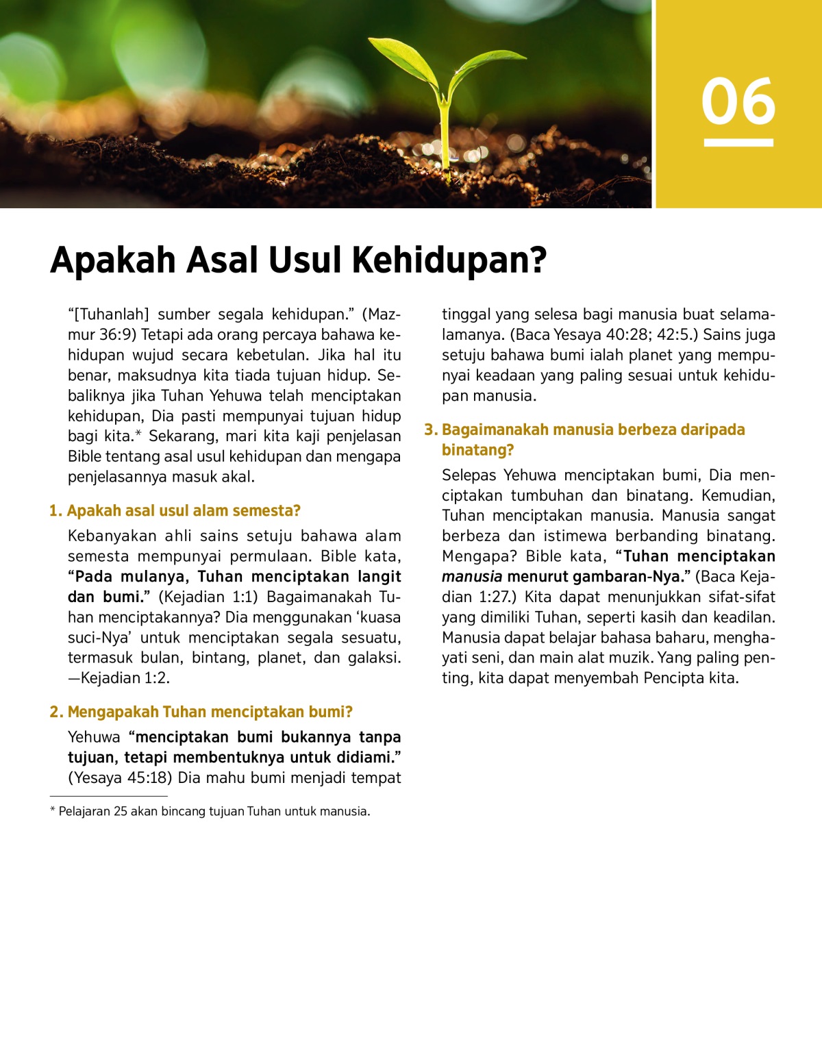 a Pelajaran 25 akan bincang tujuan Tuhan untuk manusia.