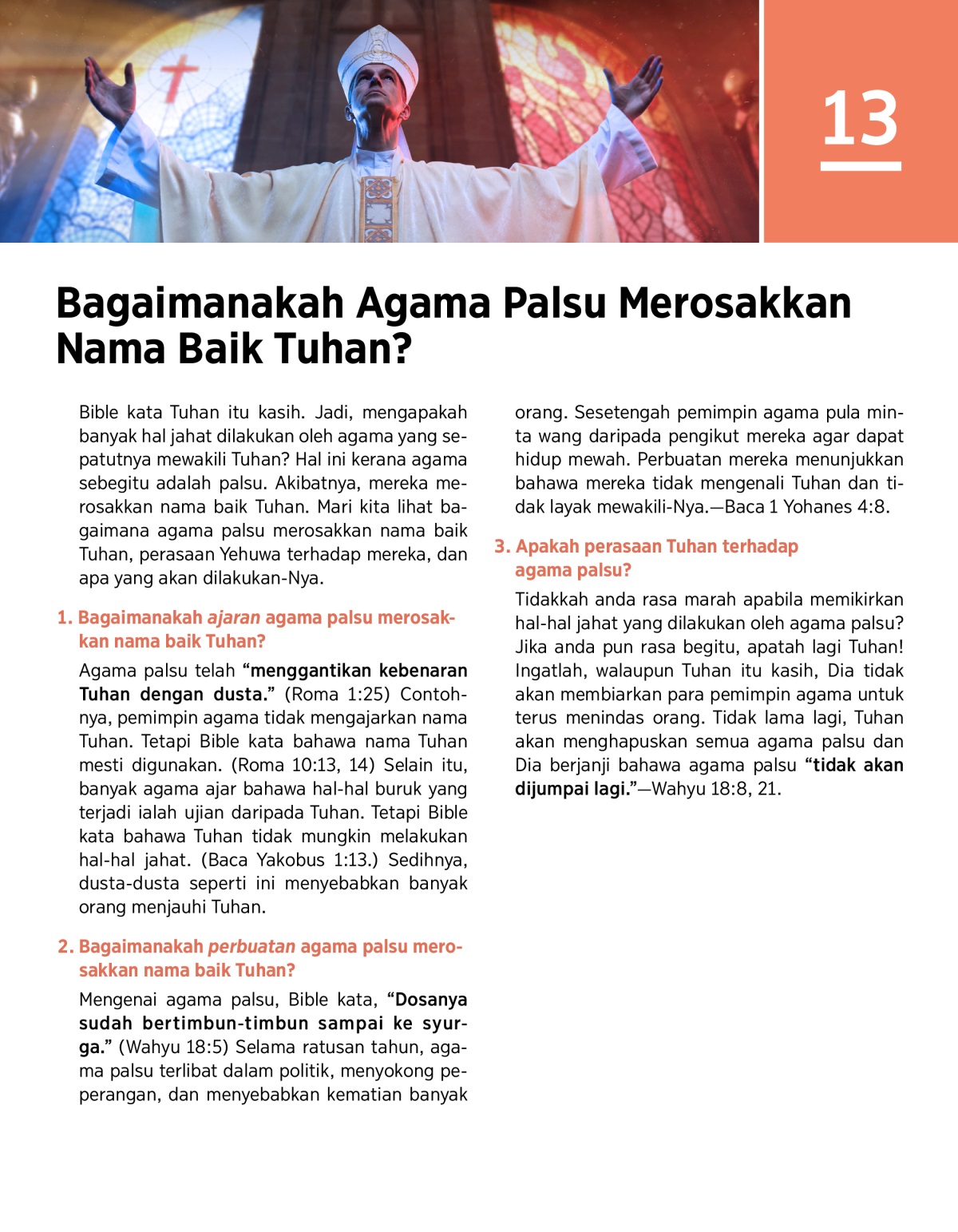 Lihatlah perasaan Tuhan terhadap agama palsu. Belajar lebih banyak tentang apa yang dilakukan oleh agama palsu dan mengapa hal itu tidak patut menghalang anda daripada mengenali Yehuwa.