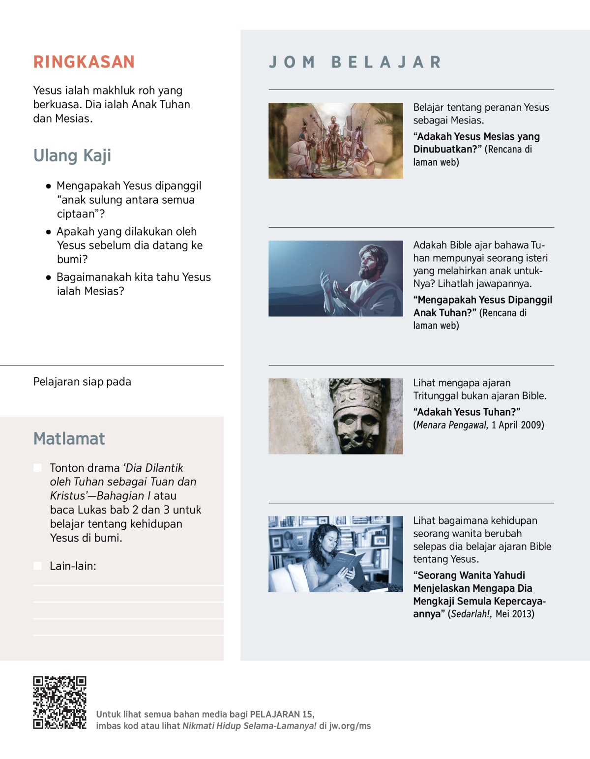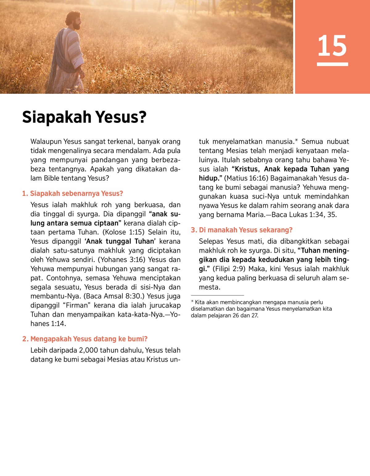 a Kita akan membincangkan mengapa manusia perlu diselamatkan dan bagaimana Yesus menyelamatkan kita dalam pelajaran 26 dan 27.